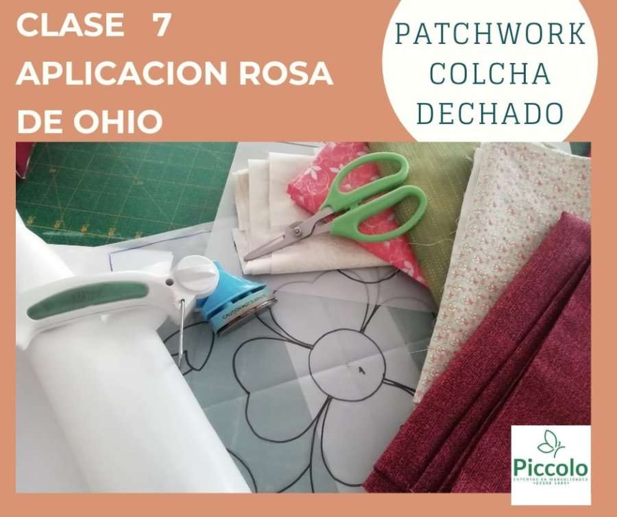 Inicio / Moldes Clases Virtuales / Colcha Dechado en Patchwork / Molde Aplicación Rosa de Ohio con Piccolo