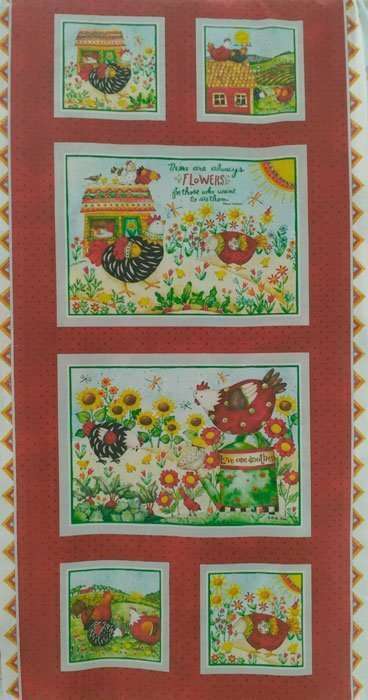 Inicio / Telas para Manualidades / Telas Miniprint para Patchwork / Panel-Gallinas-1